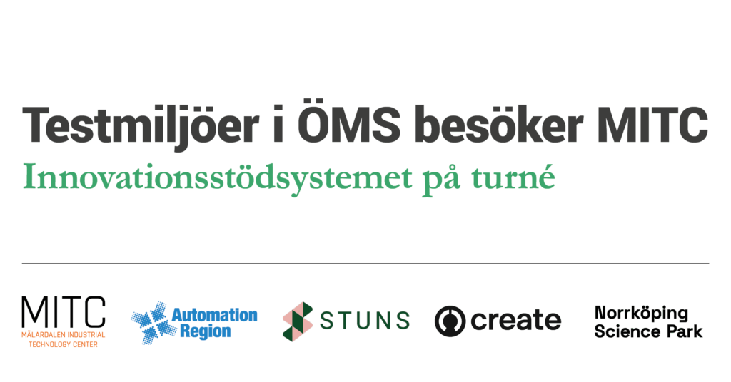 MITC bjuder in till vårt tech center som en del i STUNS initiativ, Testmiljöer i ÖMS. Under dagen berättar vi hur vi framgångsrikt arbetar i nära samverkan med akademien och näringslivet, både lokalt, regionalt och nationellt för att skapa resultat. Det kommer också ges möjlighet att titta närmare på vår testmiljö där vi demar våra testbäddar inom IoT, Smart Underhåll och Simulering.